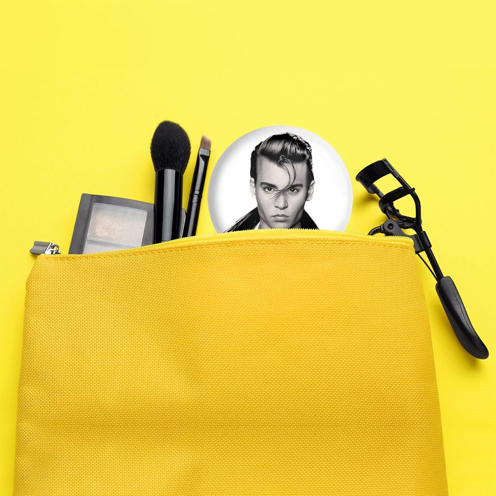 آینه های جیبی جانی دپ Johnny Depp خندالو دایره ای به قطر 7.5 سانتی متر می باشد که نه خیلی بزرگ و غیر قابل استفاده در کیف آرایشی ست و نه خیلی کوچک که تصویر خاصی در آن مشاهده نشود. سایزی استاندارد و کارآمد دارد و مناسب قرار گیری در کیف لوازم آرایش و کیف های کوچک دستی نیز هست.