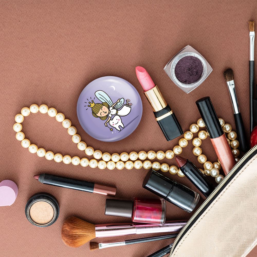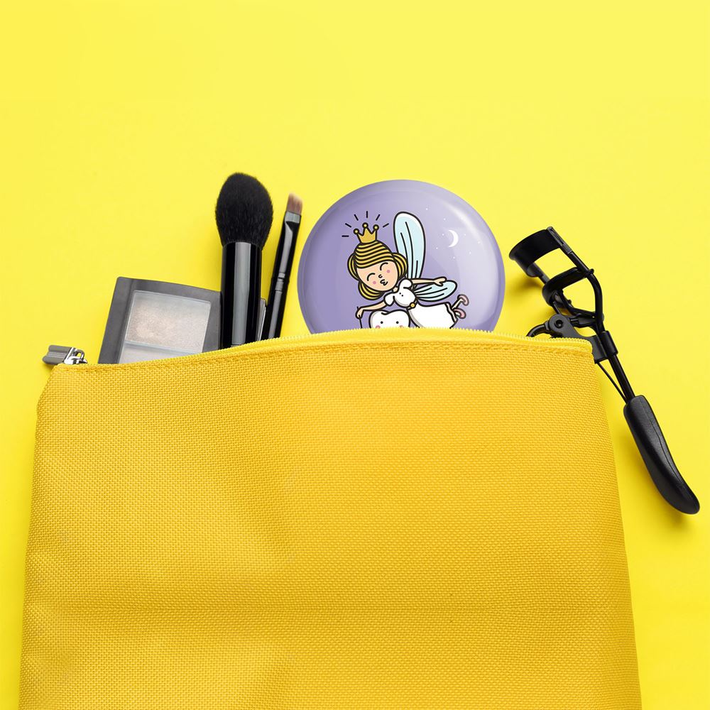 آینه های جیبی جشن دندونی دخترونه خندالو دایره ای به قطر 7.5 سانتی متر می باشد که نه خیلی بزرگ و غیر قابل استفاده در کیف آرایشی ست و نه خیلی کوچک که تصویر خاصی در آن مشاهده نشود. سایزی استاندارد و کارآمد دارد و مناسب قرار گیری در کیف لوازم آرایش و کیف های کوچک دستی نیز هست.