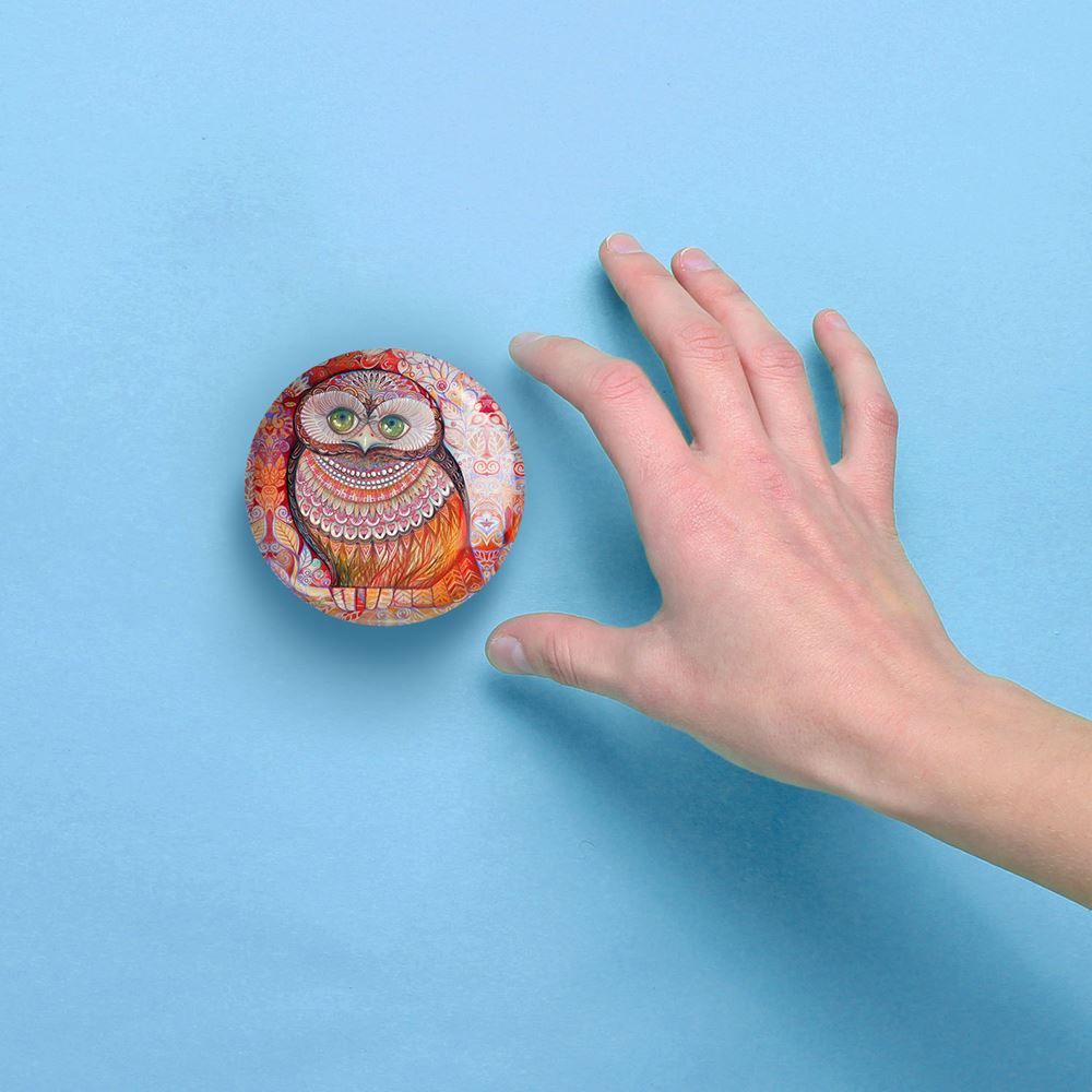 آینه های جیبی جغد خندالو دایره ای به قطر 7.5 سانتی متر می باشد که نه خیلی بزرگ و غیر قابل استفاده در کیف آرایشی ست و نه خیلی کوچک که تصویر خاصی در آن مشاهده نشود. سایزی استاندارد و کارآمد دارد و مناسب قرار گیری در کیف لوازم آرایش و کیف های کوچک دستی نیز هست.