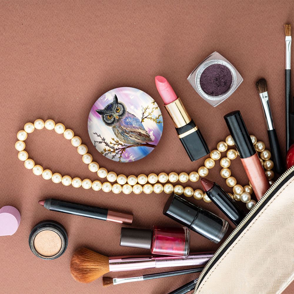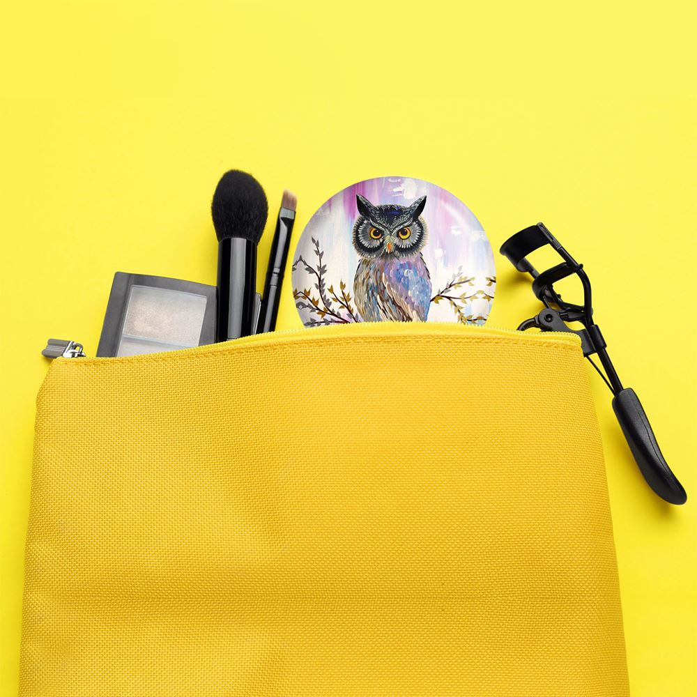 آینه های جیبی جغد خندالو دایره ای به قطر 7.5 سانتی متر می باشد که نه خیلی بزرگ و غیر قابل استفاده در کیف آرایشی ست و نه خیلی کوچک که تصویر خاصی در آن مشاهده نشود. سایزی استاندارد و کارآمد دارد و مناسب قرار گیری در کیف لوازم آرایش و کیف های کوچک دستی نیز هست. بدنه ی آینه جیبی جغد در قسمتی که آینه را در بر گرفته فلزی بوده و ظاهر براق و بسیار زیبایی دارد. چاپ طرح در پشت آینه بوسیله چاپگرهای دیجیتال شش رنگ با شفافیت و کیفیتی مثال زدنی انجام گرفته و با روکش لمینت حرارتی پوشیده شده که در مقابل آسیب و خط و خش مقاوم بوده و کیفیت بالایی دارد. آینه های جیبی جغد خندالو با تنوع طرحی بسیار بالا، سلیقه هر نوع مخاطبی را تامین میکند.