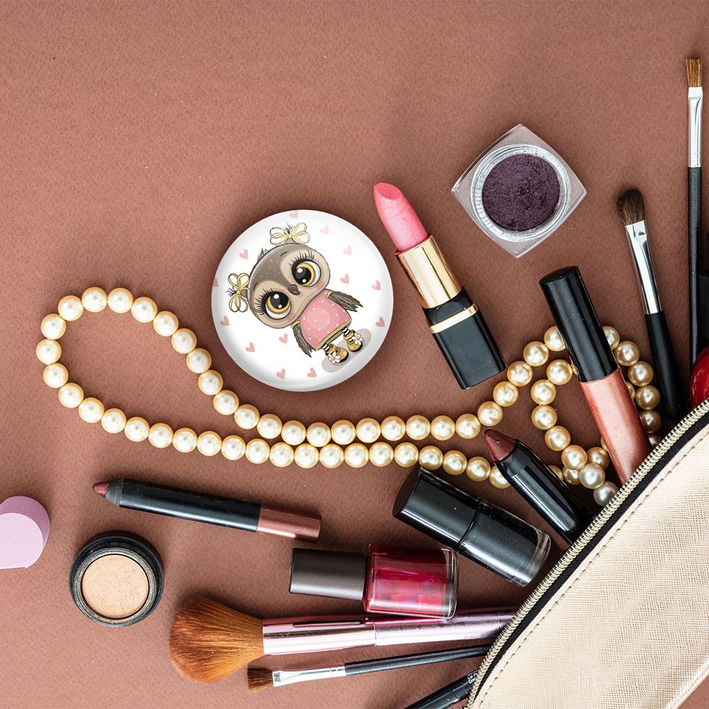 آینه های جیبی جغد خندالو دایره ای به قطر 7.5 سانتی متر می باشد که نه خیلی بزرگ و غیر قابل استفاده در کیف آرایشی ست و نه خیلی کوچک که تصویر خاصی در آن مشاهده نشود. سایزی استاندارد و کارآمد دارد و مناسب قرار گیری در کیف لوازم آرایش و کیف های کوچک دستی نیز هست. بدنه ی آینه جیبی جغد در قسمتی که آینه را در بر گرفته فلزی بوده و ظاهر براق و بسیار زیبایی دارد. چاپ طرح در پشت آینه بوسیله چاپگرهای دیجیتال شش رنگ با شفافیت و کیفیتی مثال زدنی انجام گرفته و با روکش لمینت حرارتی پوشیده شده که در مقابل آسیب و خط و خش مقاوم بوده و کیفیت بالایی دارد. آینه های جیبی جغد خندالو با تنوع طرحی بسیار بالا، سلیقه هر نوع مخاطبی را تامین میکند.