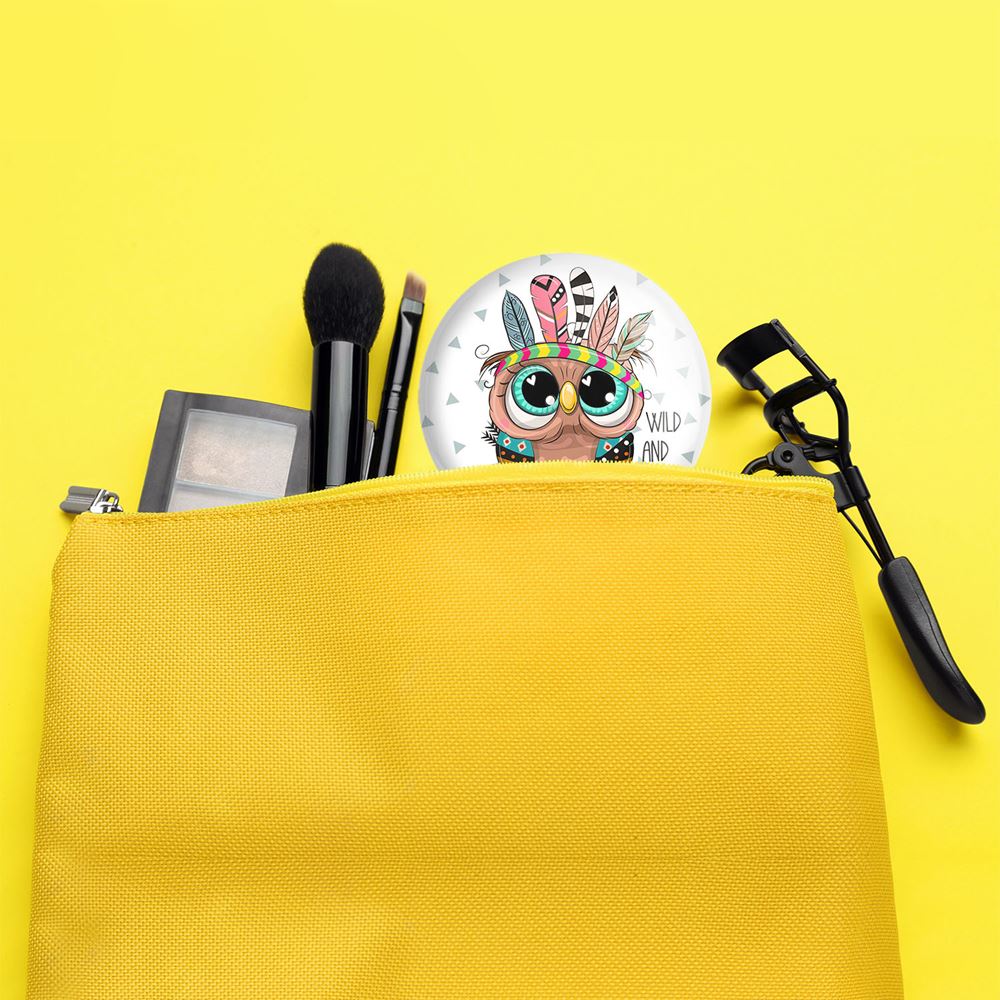آینه های جیبی جغد خندالو دایره ای به قطر 7.5 سانتی متر می باشد که نه خیلی بزرگ و غیر قابل استفاده در کیف آرایشی ست و نه خیلی کوچک که تصویر خاصی در آن مشاهده نشود. سایزی استاندارد و کارآمد دارد و مناسب قرار گیری در کیف لوازم آرایش و کیف های کوچک دستی نیز هست.