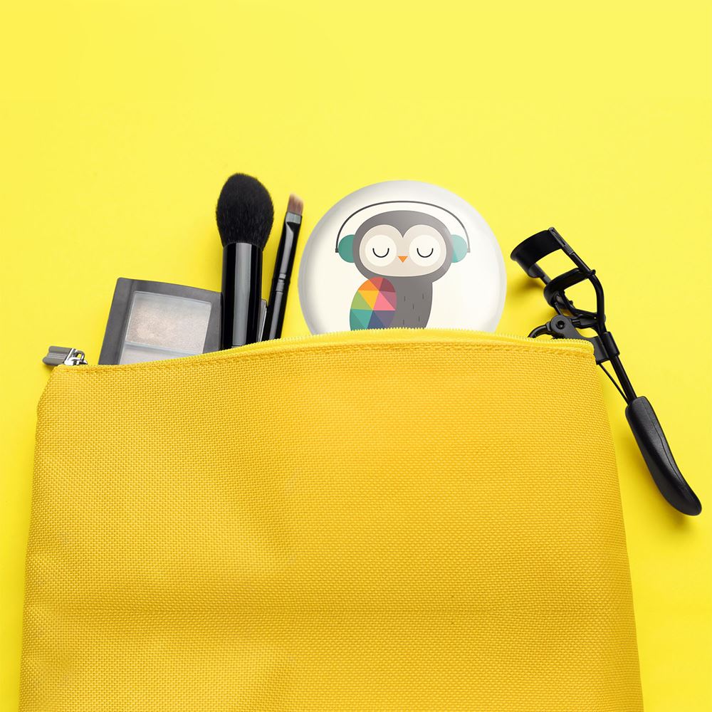 آینه های جیبی جغد خندالو دایره ای به قطر 7.5 سانتی متر می باشد که نه خیلی بزرگ و غیر قابل استفاده در کیف آرایشی ست و نه خیلی کوچک که تصویر خاصی در آن مشاهده نشود. سایزی استاندارد و کارآمد دارد و مناسب قرار گیری در کیف لوازم آرایش و کیف های کوچک دستی نیز هست.