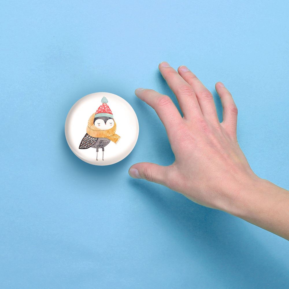 آینه های جیبی جغد خندالو دایره ای به قطر 7.5 سانتی متر می باشد که نه خیلی بزرگ و غیر قابل استفاده در کیف آرایشی ست و نه خیلی کوچک که تصویر خاصی در آن مشاهده نشود. سایزی استاندارد و کارآمد دارد و مناسب قرار گیری در کیف لوازم آرایش و کیف های کوچک دستی نیز هست. بدنه ی آینه جیبی جغد در قسمتی که آینه را در بر گرفته فلزی بوده و ظاهر براق و بسیار زیبایی دارد. چاپ طرح در پشت آینه بوسیله چاپگرهای دیجیتال شش رنگ با شفافیت و کیفیتی مثال زدنی انجام گرفته و با روکش لمینت حرارتی پوشیده شده که در مقابل آسیب و خط و خش مقاوم بوده و کیفیت بالایی دارد. آینه های جیبی جغد خندالو با تنوع طرحی بسیار بالا، سلیقه هر نوع مخاطبی را تامین میکند.