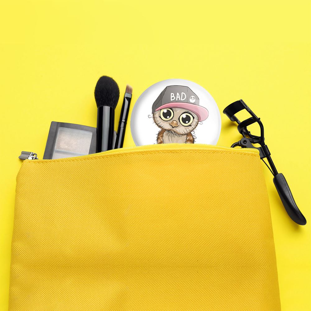 آینه های جیبی جغد خندالو دایره ای به قطر 7.5 سانتی متر می باشد که نه خیلی بزرگ و غیر قابل استفاده در کیف آرایشی ست و نه خیلی کوچک که تصویر خاصی در آن مشاهده نشود. سایزی استاندارد و کارآمد دارد و مناسب قرار گیری در کیف لوازم آرایش و کیف های کوچک دستی نیز هست.