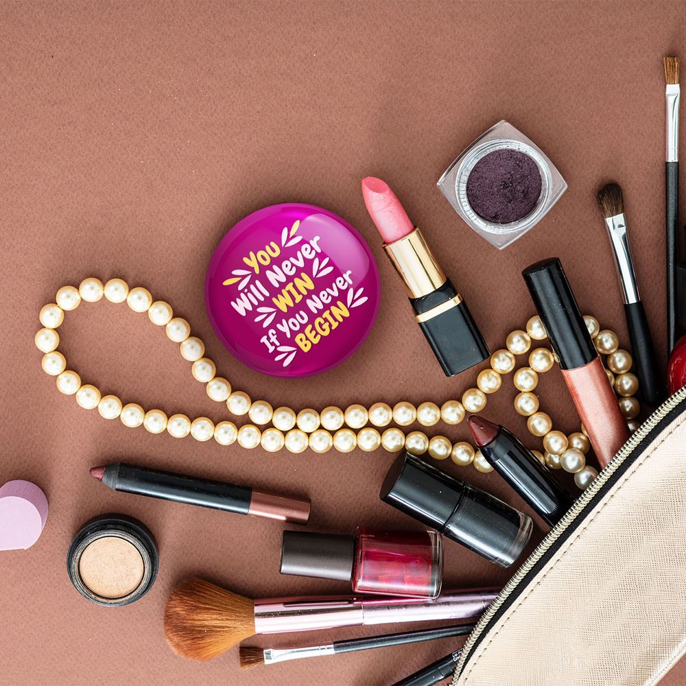آینه های جیبی جملات انگیزشی خندالو دایره ای به قطر 7.5 سانتی متر می باشد که نه خیلی بزرگ و غیر قابل استفاده در کیف آرایشی ست و نه خیلی کوچک که تصویر خاصی در آن مشاهده نشود. سایزی استاندارد و کارآمد دارد و مناسب قرار گیری در کیف لوازم آرایش و کیف های کوچک دستی نیز هست.