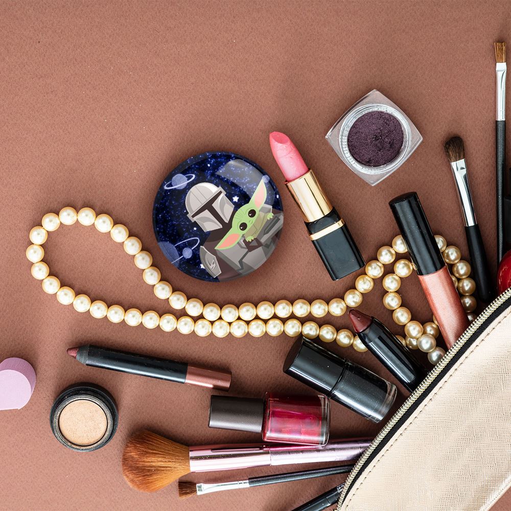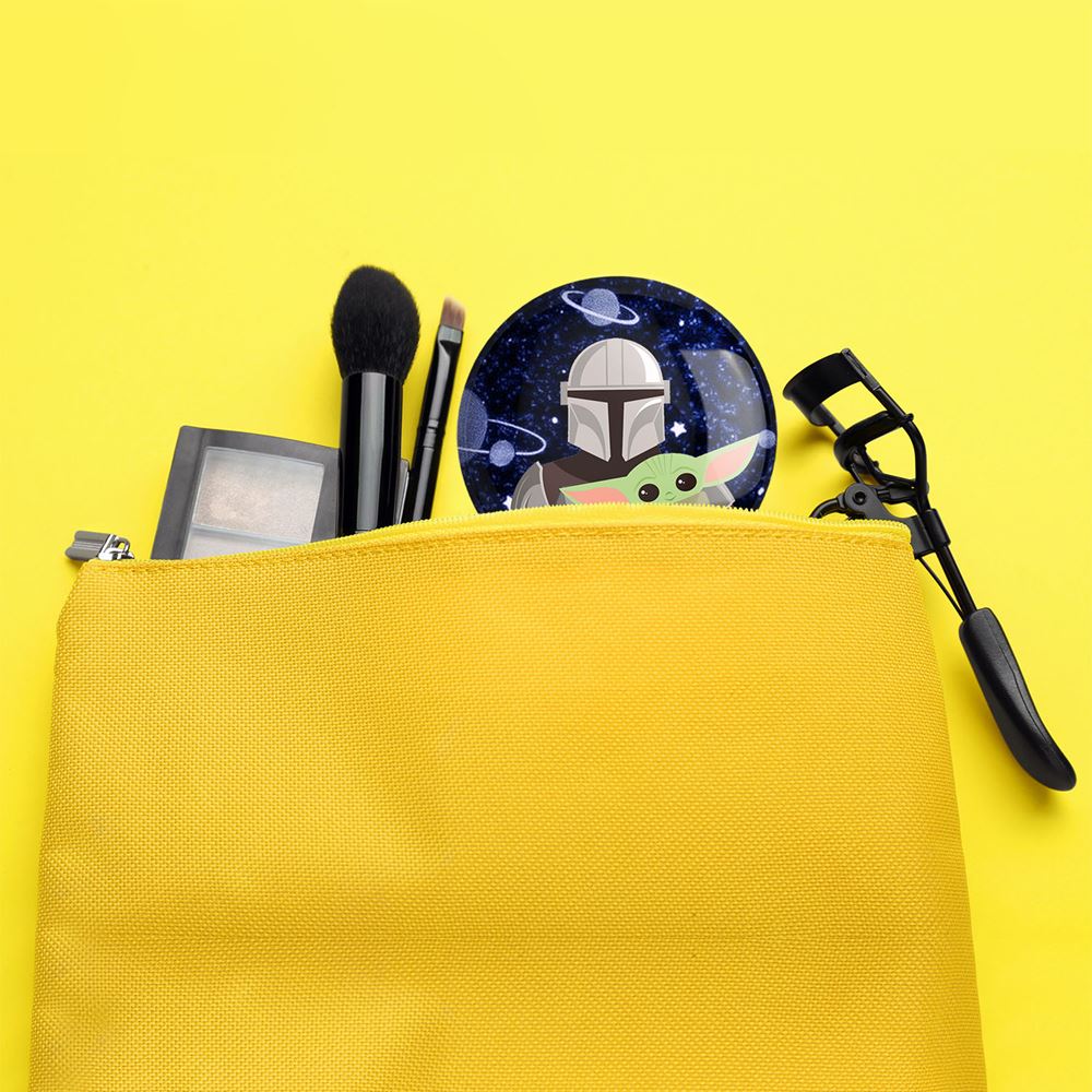 آینه های جیبی جنگ ستارگان Star Wars خندالو دایره ای به قطر 7.5 سانتی متر می باشد که نه خیلی بزرگ و غیر قابل استفاده در کیف آرایشی ست و نه خیلی کوچک که تصویر خاصی در آن مشاهده نشود. سایزی استاندارد و کارآمد دارد و مناسب قرار گیری در کیف لوازم آرایش و کیف های کوچک دستی نیز هست.