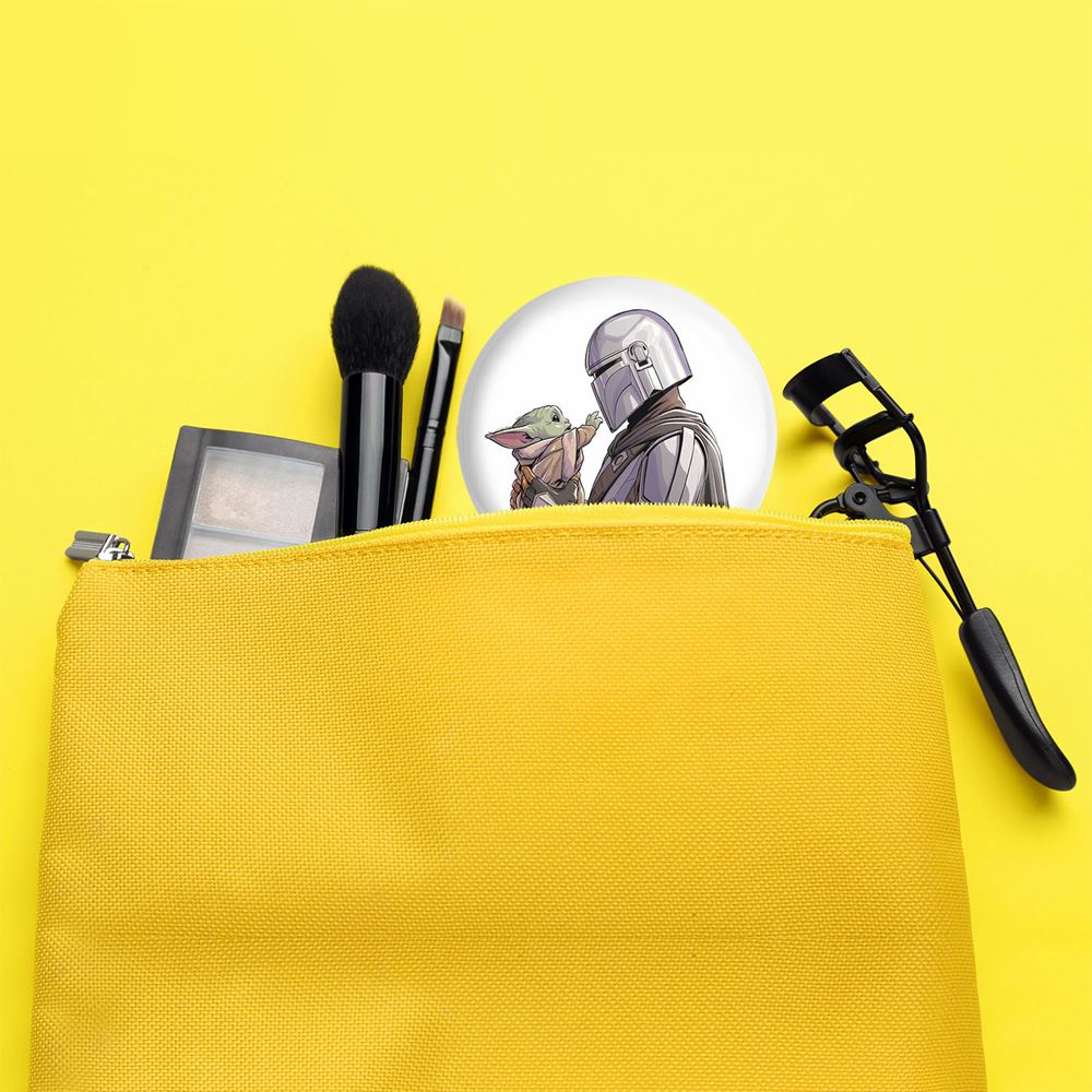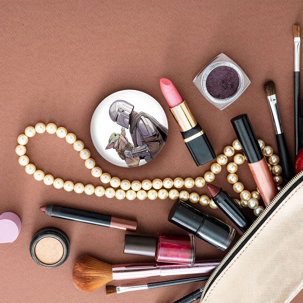 آینه های جیبی جنگ ستارگان Star Wars خندالو دایره ای به قطر 7.5 سانتی متر می باشد که نه خیلی بزرگ و غیر قابل استفاده در کیف آرایشی ست و نه خیلی کوچک که تصویر خاصی در آن مشاهده نشود. سایزی استاندارد و کارآمد دارد و مناسب قرار گیری در کیف لوازم آرایش و کیف های کوچک دستی نیز هست.