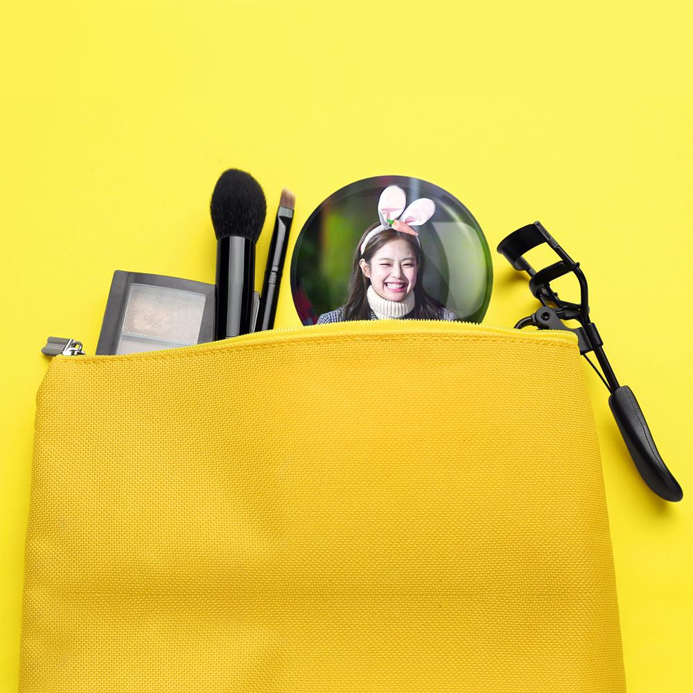 آینه های جیبی جنی بلک پینک Black Pink خندالو دایره ای به قطر 7.5 سانتی متر می باشد که نه خیلی بزرگ و غیر قابل استفاده در کیف آرایشی ست و نه خیلی کوچک که تصویر خاصی در آن مشاهده نشود. سایزی استاندارد و کارآمد دارد و مناسب قرار گیری در کیف لوازم آرایش و کیف های کوچک دستی نیز هست.