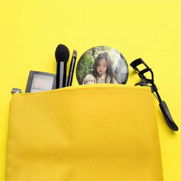 آینه های جیبی جنی بلک پینک Black Pink خندالو دایره ای به قطر 7.5 سانتی متر می باشد که نه خیلی بزرگ و غیر قابل استفاده در کیف آرایشی ست و نه خیلی کوچک که تصویر خاصی در آن مشاهده نشود. سایزی استاندارد و کارآمد دارد و مناسب قرار گیری در کیف لوازم آرایش و کیف های کوچک دستی نیز هست.
