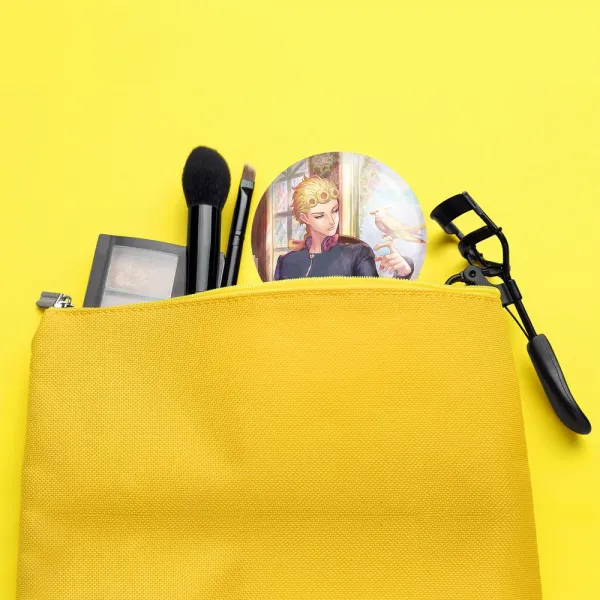 آینه های جیبی جورنو جواوونو انیمه جوجو Jojo خندالو دایره ای به قطر 7.5 سانتی متر می باشد که نه خیلی بزرگ و غیر قابل استفاده در کیف آرایشی ست و نه خیلی کوچک که تصویر خاصی در آن مشاهده نشود. سایزی استاندارد و کارآمد دارد و مناسب قرار گیری در کیف لوازم آرایش و کیف های کوچک دستی نیز هست. بدنه ی آینه جیبی جورنو جواوونو انیمه جوجو Jojo در قسمتی که آینه را در بر گرفته فلزی بوده و ظاهر براق و بسیار زیبایی دارد. چاپ طرح در پشت آینه بوسیله چاپگرهای دیجیتال شش رنگ با شفافیت و کیفیتی مثال زدنی انجام گرفته و با روکش لمینت حرارتی پوشیده شده که در مقابل آسیب و خط و خش مقاوم بوده و کیفیت بالایی دارد. آینه های جیبی جورنو جواوونو انیمه جوجو Jojo خندالو با تنوع طرحی بسیار بالا، سلیقه هر نوع مخاطبی را تامین میکند.