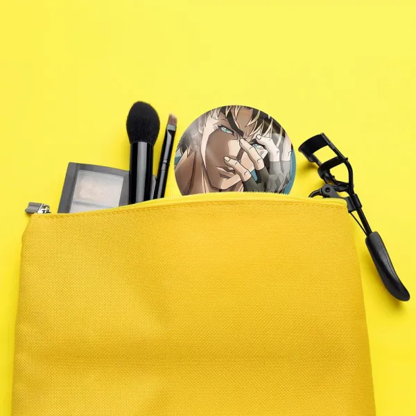 آینه های جیبی جوزف جوستار انیمه جوجو Jojo خندالو دایره ای به قطر 7.5 سانتی متر می باشد که نه خیلی بزرگ و غیر قابل استفاده در کیف آرایشی ست و نه خیلی کوچک که تصویر خاصی در آن مشاهده نشود. سایزی استاندارد و کارآمد دارد و مناسب قرار گیری در کیف لوازم آرایش و کیف های کوچک دستی نیز هست. بدنه ی آینه جیبی جوزف جوستار انیمه جوجو Jojo در قسمتی که آینه را در بر گرفته فلزی بوده و ظاهر براق و بسیار زیبایی دارد. چاپ طرح در پشت آینه بوسیله چاپگرهای دیجیتال شش رنگ با شفافیت و کیفیتی مثال زدنی انجام گرفته و با روکش لمینت حرارتی پوشیده شده که در مقابل آسیب و خط و خش مقاوم بوده و کیفیت بالایی دارد. آینه های جیبی جوزف جوستار انیمه جوجو Jojo خندالو با تنوع طرحی بسیار بالا، سلیقه هر نوع مخاطبی را تامین میکند.