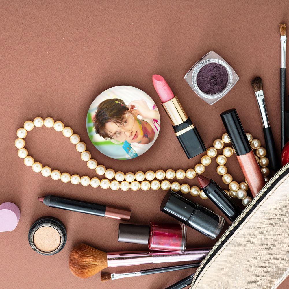 آینه های جیبی جونهی گروه سونتین Seventeen خندالو دایره ای به قطر 7.5 سانتی متر می باشد که نه خیلی بزرگ و غیر قابل استفاده در کیف آرایشی ست و نه خیلی کوچک که تصویر خاصی در آن مشاهده نشود. سایزی استاندارد و کارآمد دارد و مناسب قرار گیری در کیف لوازم آرایش و کیف های کوچک دستی نیز هست.
