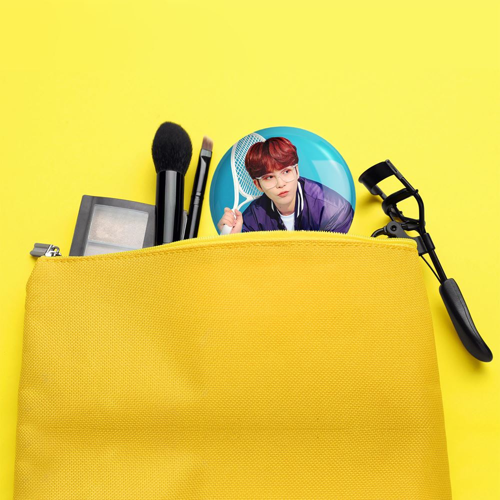 آینه های جیبی جونگهو گروه ایتیز ATEEZ خندالو دایره ای به قطر 7.5 سانتی متر می باشد که نه خیلی بزرگ و غیر قابل استفاده در کیف آرایشی ست و نه خیلی کوچک که تصویر خاصی در آن مشاهده نشود. سایزی استاندارد و کارآمد دارد و مناسب قرار گیری در کیف لوازم آرایش و کیف های کوچک دستی نیز هست.