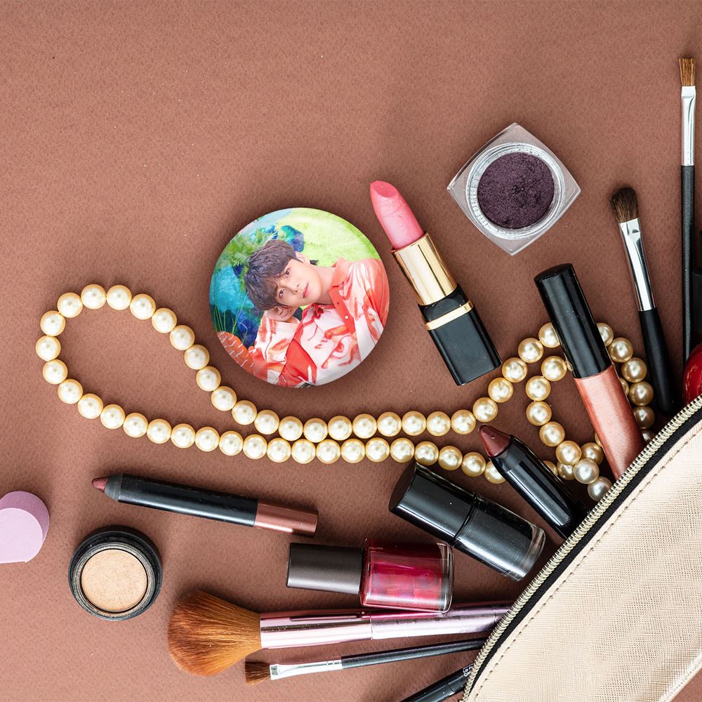 آینه های جیبی جونگهو گروه ایتیز ATEEZ خندالو دایره ای به قطر 7.5 سانتی متر می باشد که نه خیلی بزرگ و غیر قابل استفاده در کیف آرایشی ست و نه خیلی کوچک که تصویر خاصی در آن مشاهده نشود. سایزی استاندارد و کارآمد دارد و مناسب قرار گیری در کیف لوازم آرایش و کیف های کوچک دستی نیز هست.