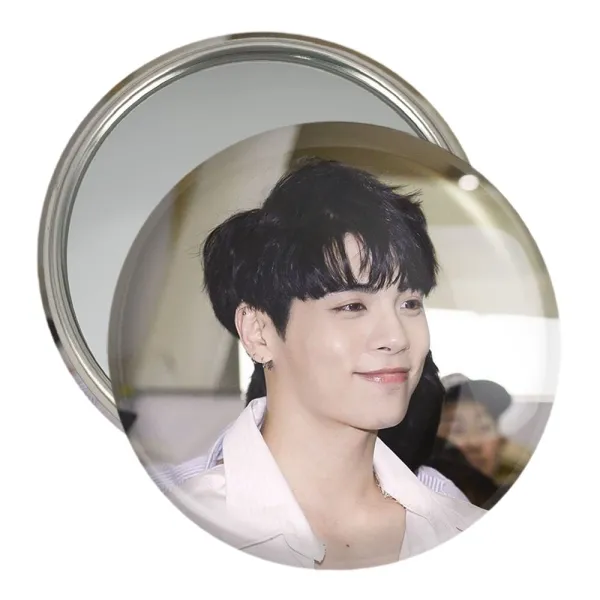 آینه های جیبی جونگهیون گروه شاینی Shinee خندالو دایره ای به قطر 7.5 سانتی متر می باشد که نه خیلی بزرگ و غیر قابل استفاده در کیف آرایشی ست و نه خیلی کوچک که تصویر خاصی در آن مشاهده نشود. سایزی استاندارد و کارآمد دارد و مناسب قرار گیری در کیف لوازم آرایش و کیف های کوچک دستی نیز هست.