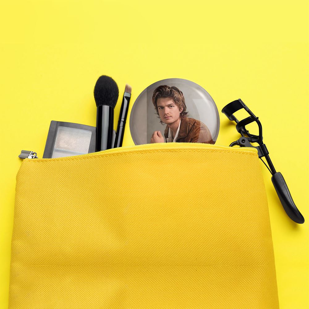 آینه های جیبی جو سریال استرنجر تینگز Stranger Things خندالو دایره ای به قطر 7.5 سانتی متر می باشد که نه خیلی بزرگ و غیر قابل استفاده در کیف آرایشی ست و نه خیلی کوچک که تصویر خاصی در آن مشاهده نشود. سایزی استاندارد و کارآمد دارد و مناسب قرار گیری در کیف لوازم آرایش و کیف های کوچک دستی نیز هست.