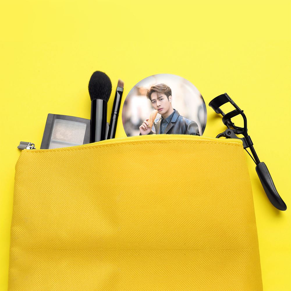 آینه های جیبی جکسون گروه گات سون GOT7 خندالو دایره ای به قطر 7.5 سانتی متر می باشد که نه خیلی بزرگ و غیر قابل استفاده در کیف آرایشی ست و نه خیلی کوچک که تصویر خاصی در آن مشاهده نشود. سایزی استاندارد و کارآمد دارد و مناسب قرار گیری در کیف لوازم آرایش و کیف های کوچک دستی نیز هست.