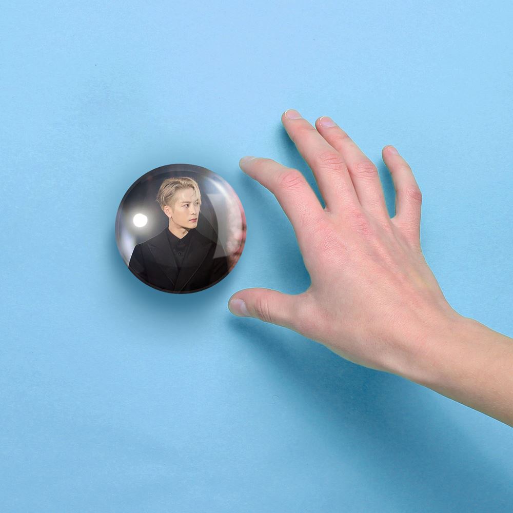 آینه های جیبی جکسون گروه گات سون GOT7 خندالو دایره ای به قطر 7.5 سانتی متر می باشد که نه خیلی بزرگ و غیر قابل استفاده در کیف آرایشی ست و نه خیلی کوچک که تصویر خاصی در آن مشاهده نشود. سایزی استاندارد و کارآمد دارد و مناسب قرار گیری در کیف لوازم آرایش و کیف های کوچک دستی نیز هست.