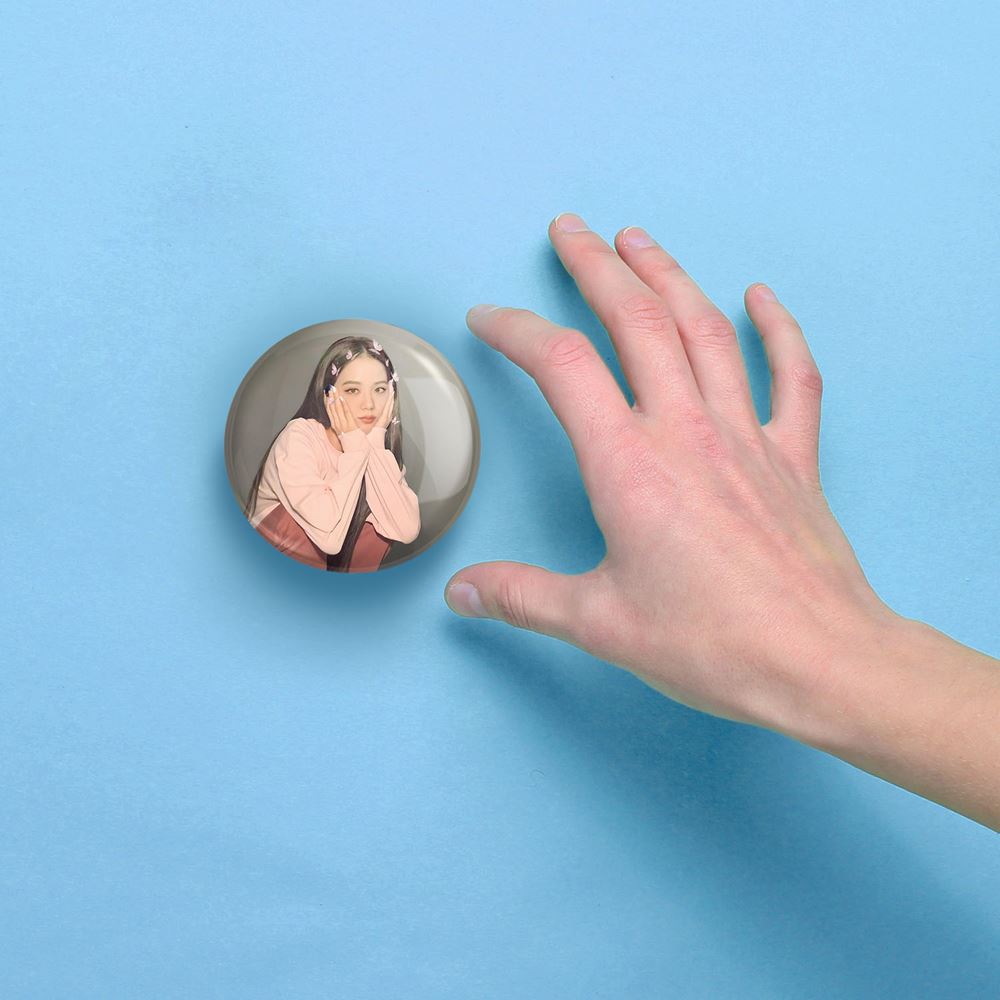 آینه های جیبی جیسو گروه بلک پینک Black Pink خندالو دایره ای به قطر 7.5 سانتی متر می باشد که نه خیلی بزرگ و غیر قابل استفاده در کیف آرایشی ست و نه خیلی کوچک که تصویر خاصی در آن مشاهده نشود. سایزی استاندارد و کارآمد دارد و مناسب قرار گیری در کیف لوازم آرایش و کیف های کوچک دستی نیز هست.