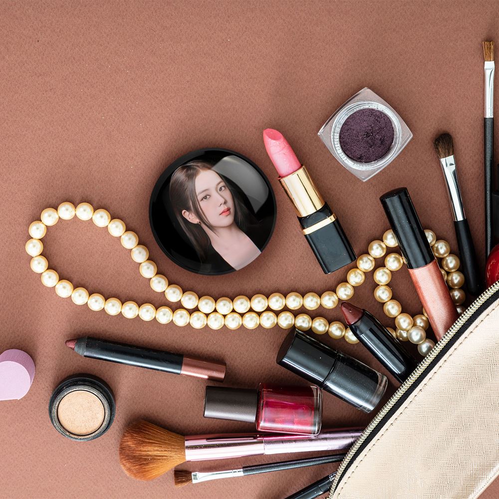 آینه های جیبی جیسو گروه بلک پینک Black Pink خندالو دایره ای به قطر 7.5 سانتی متر می باشد که نه خیلی بزرگ و غیر قابل استفاده در کیف آرایشی ست و نه خیلی کوچک که تصویر خاصی در آن مشاهده نشود. سایزی استاندارد و کارآمد دارد و مناسب قرار گیری در کیف لوازم آرایش و کیف های کوچک دستی نیز هست.