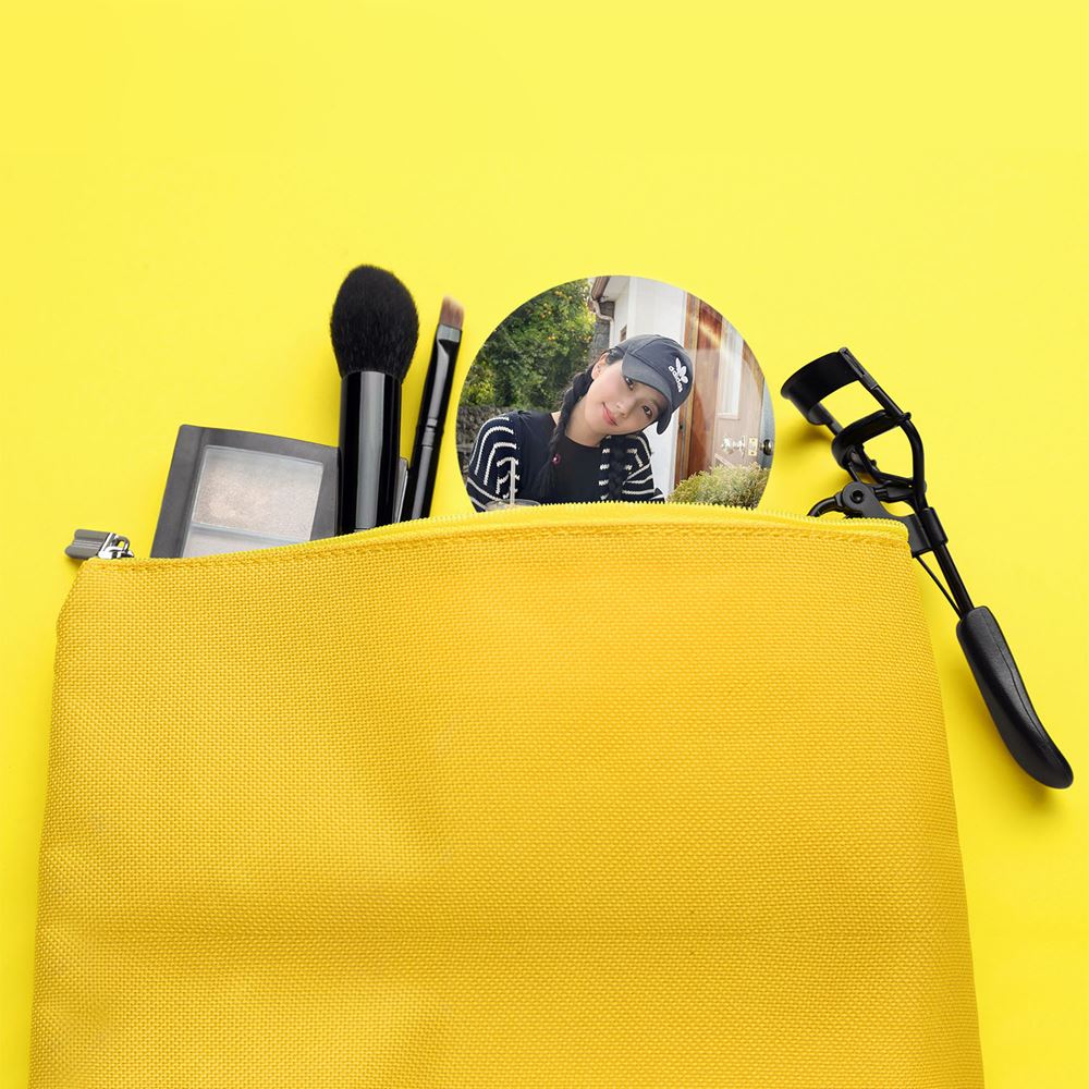 آینه های جیبی جیسو گروه بلک پینک Black Pink خندالو دایره ای به قطر 7.5 سانتی متر می باشد که نه خیلی بزرگ و غیر قابل استفاده در کیف آرایشی ست و نه خیلی کوچک که تصویر خاصی در آن مشاهده نشود. سایزی استاندارد و کارآمد دارد و مناسب قرار گیری در کیف لوازم آرایش و کیف های کوچک دستی نیز هست.