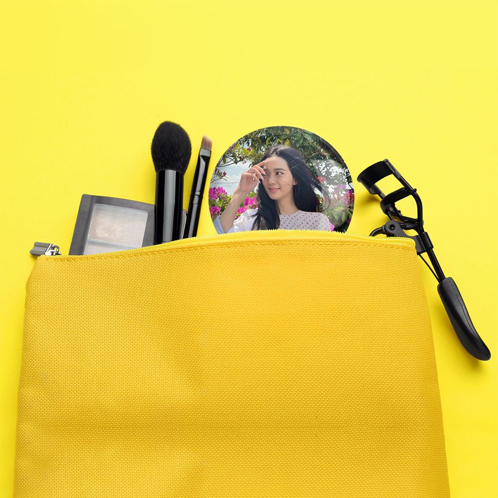 آینه های جیبی جیسو گروه بلک پینک Black Pink خندالو دایره ای به قطر 7.5 سانتی متر می باشد که نه خیلی بزرگ و غیر قابل استفاده در کیف آرایشی ست و نه خیلی کوچک که تصویر خاصی در آن مشاهده نشود. سایزی استاندارد و کارآمد دارد و مناسب قرار گیری در کیف لوازم آرایش و کیف های کوچک دستی نیز هست.