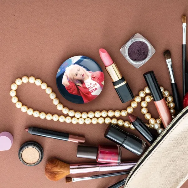 آینه های جیبی جیوو گروه کارد KARD خندالو دایره ای به قطر 7.5 سانتی متر می باشد که نه خیلی بزرگ و غیر قابل استفاده در کیف آرایشی ست و نه خیلی کوچک که تصویر خاصی در آن مشاهده نشود. سایزی استاندارد و کارآمد دارد و مناسب قرار گیری در کیف لوازم آرایش و کیف های کوچک دستی نیز هست.