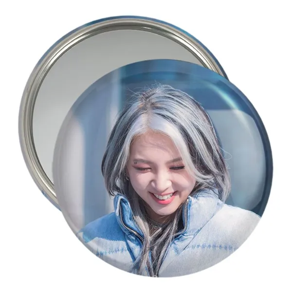 آینه های جیبی جیوو گروه کارد Kard خندالو دایره ای به قطر 7.5 سانتی متر می باشد که نه خیلی بزرگ و غیر قابل استفاده در کیف آرایشی ست و نه خیلی کوچک که تصویر خاصی در آن مشاهده نشود. سایزی استاندارد و کارآمد دارد و مناسب قرار گیری در کیف لوازم آرایش و کیف های کوچک دستی نیز هست.