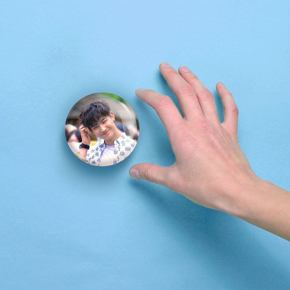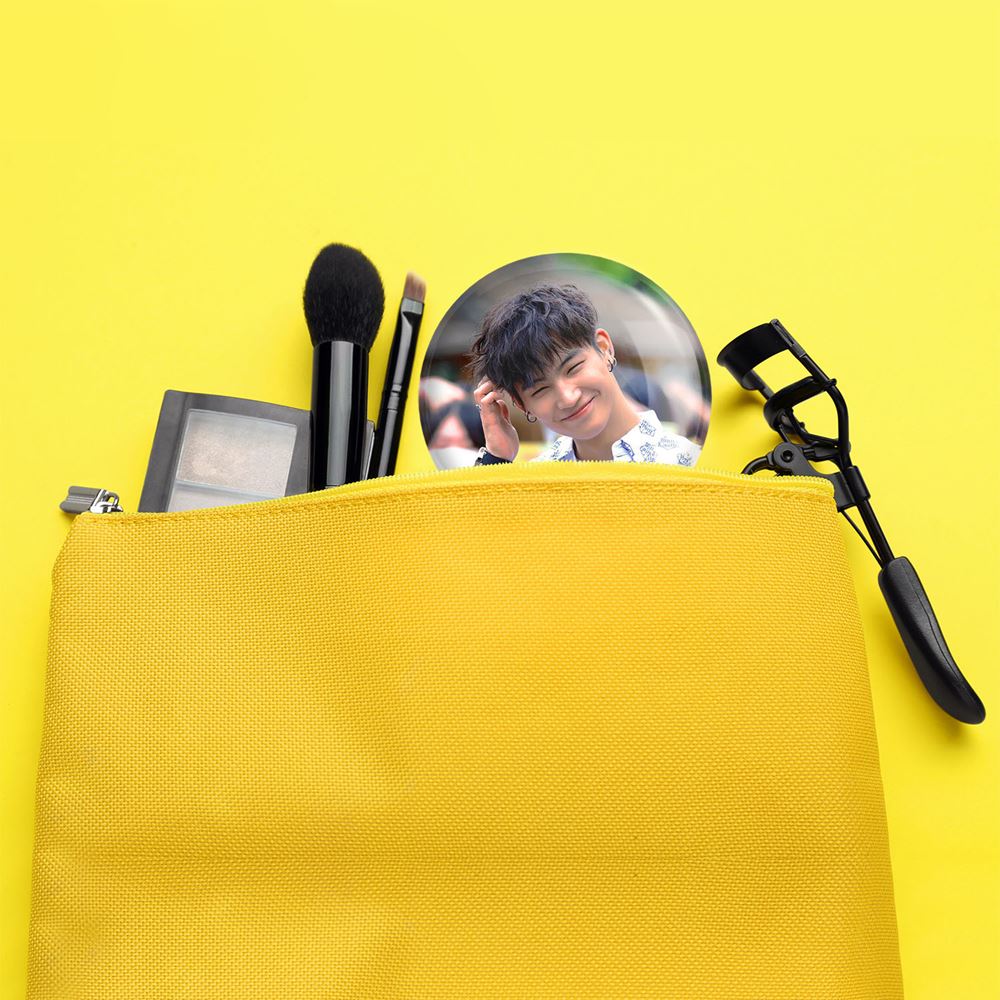 آینه های جیبی جی بی گروه گات سون GOT7 خندالو دایره ای به قطر 7.5 سانتی متر می باشد که نه خیلی بزرگ و غیر قابل استفاده در کیف آرایشی ست و نه خیلی کوچک که تصویر خاصی در آن مشاهده نشود. سایزی استاندارد و کارآمد دارد و مناسب قرار گیری در کیف لوازم آرایش و کیف های کوچک دستی نیز هست.