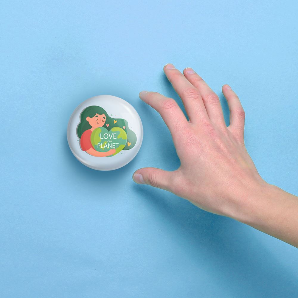 آینه های جیبی حمایت از محیط زیست خندالو دایره ای به قطر 7.5 سانتی متر می باشد که نه خیلی بزرگ و غیر قابل استفاده در کیف آرایشی ست و نه خیلی کوچک که تصویر خاصی در آن مشاهده نشود. سایزی استاندارد و کارآمد دارد و مناسب قرار گیری در کیف لوازم آرایش و کیف های کوچک دستی نیز هست.