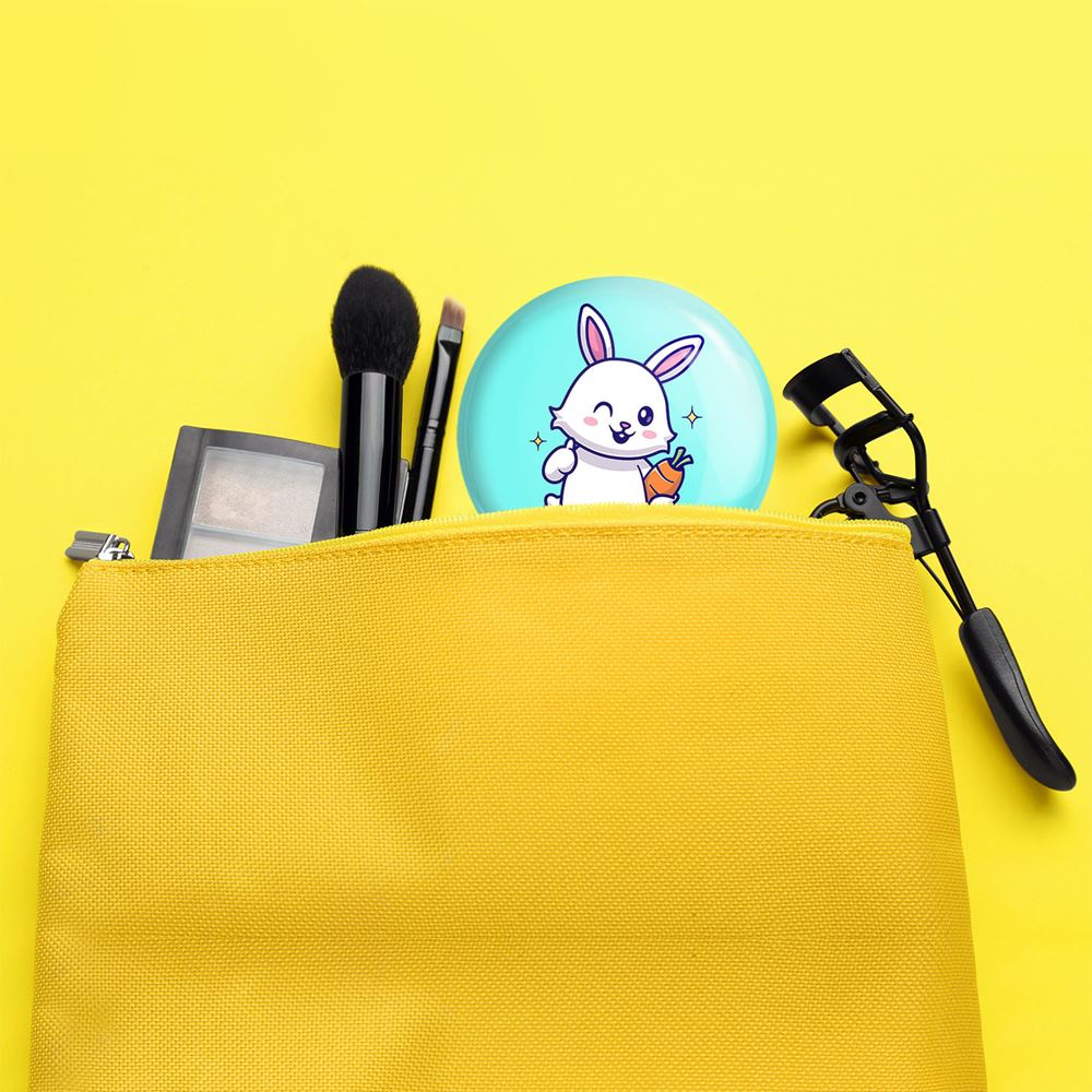 آینه های جیبی حیوانات بامزه خرگوش خندالو دایره ای به قطر 7.5 سانتی متر می باشد که نه خیلی بزرگ و غیر قابل استفاده در کیف آرایشی ست و نه خیلی کوچک که تصویر خاصی در آن مشاهده نشود. سایزی استاندارد و کارآمد دارد و مناسب قرار گیری در کیف لوازم آرایش و کیف های کوچک دستی نیز هست. بدنه ی آینه جیبی حیوانات بامزه خرگوش در قسمتی که آینه را در بر گرفته فلزی بوده و ظاهر براق و بسیار زیبایی دارد. چاپ طرح در پشت آینه بوسیله چاپگرهای دیجیتال شش رنگ با شفافیت و کیفیتی مثال زدنی انجام گرفته و با روکش لمینت حرارتی پوشیده شده که در مقابل آسیب و خط و خش مقاوم بوده و کیفیت بالایی دارد. آینه های جیبی حیوانات بامزه خرگوش خندالو با تنوع طرحی بسیار بالا، سلیقه هر نوع مخاطبی را تامین میکند.