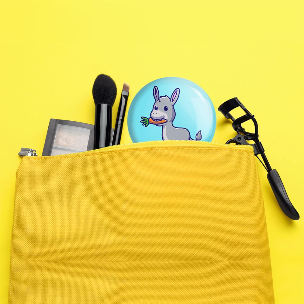 آینه های جیبی حیوانات بامزه خر الاغ خندالو دایره ای به قطر 7.5 سانتی متر می باشد که نه خیلی بزرگ و غیر قابل استفاده در کیف آرایشی ست و نه خیلی کوچک که تصویر خاصی در آن مشاهده نشود. سایزی استاندارد و کارآمد دارد و مناسب قرار گیری در کیف لوازم آرایش و کیف های کوچک دستی نیز هست. بدنه ی آینه جیبی حیوانات بامزه خر الاغ در قسمتی که آینه را در بر گرفته فلزی بوده و ظاهر براق و بسیار زیبایی دارد. چاپ طرح در پشت آینه بوسیله چاپگرهای دیجیتال شش رنگ با شفافیت و کیفیتی مثال زدنی انجام گرفته و با روکش لمینت حرارتی پوشیده شده که در مقابل آسیب و خط و خش مقاوم بوده و کیفیت بالایی دارد. آینه های جیبی حیوانات بامزه خر الاغ خندالو با تنوع طرحی بسیار بالا، سلیقه هر نوع مخاطبی را تامین میکند.