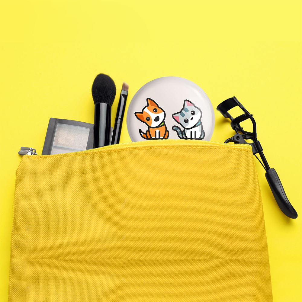 آینه های جیبی حیوانات بامزه سگ و گربه خندالو دایره ای به قطر 7.5 سانتی متر می باشد که نه خیلی بزرگ و غیر قابل استفاده در کیف آرایشی ست و نه خیلی کوچک که تصویر خاصی در آن مشاهده نشود. سایزی استاندارد و کارآمد دارد و مناسب قرار گیری در کیف لوازم آرایش و کیف های کوچک دستی نیز هست. بدنه ی آینه جیبی حیوانات بامزه سگ و گربه در قسمتی که آینه را در بر گرفته فلزی بوده و ظاهر براق و بسیار زیبایی دارد. چاپ طرح در پشت آینه بوسیله چاپگرهای دیجیتال شش رنگ با شفافیت و کیفیتی مثال زدنی انجام گرفته و با روکش لمینت حرارتی پوشیده شده که در مقابل آسیب و خط و خش مقاوم بوده و کیفیت بالایی دارد. آینه های جیبی حیوانات بامزه سگ و گربه خندالو با تنوع طرحی بسیار بالا، سلیقه هر نوع مخاطبی را تامین میکند.