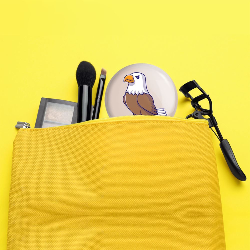 آینه های جیبی حیوانات بامزه عقاب خندالو دایره ای به قطر 7.5 سانتی متر می باشد که نه خیلی بزرگ و غیر قابل استفاده در کیف آرایشی ست و نه خیلی کوچک که تصویر خاصی در آن مشاهده نشود. سایزی استاندارد و کارآمد دارد و مناسب قرار گیری در کیف لوازم آرایش و کیف های کوچک دستی نیز هست. بدنه ی آینه جیبی حیوانات بامزه عقاب در قسمتی که آینه را در بر گرفته فلزی بوده و ظاهر براق و بسیار زیبایی دارد. چاپ طرح در پشت آینه بوسیله چاپگرهای دیجیتال شش رنگ با شفافیت و کیفیتی مثال زدنی انجام گرفته و با روکش لمینت حرارتی پوشیده شده که در مقابل آسیب و خط و خش مقاوم بوده و کیفیت بالایی دارد. آینه های جیبی حیوانات بامزه عقاب خندالو با تنوع طرحی بسیار بالا، سلیقه هر نوع مخاطبی را تامین میکند.