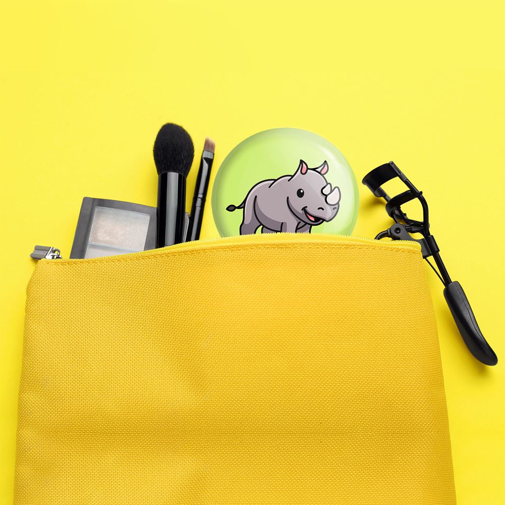 آینه های جیبی حیوانات بامزه کرگدن خندالو دایره ای به قطر 7.5 سانتی متر می باشد که نه خیلی بزرگ و غیر قابل استفاده در کیف آرایشی ست و نه خیلی کوچک که تصویر خاصی در آن مشاهده نشود. سایزی استاندارد و کارآمد دارد و مناسب قرار گیری در کیف لوازم آرایش و کیف های کوچک دستی نیز هست. بدنه ی آینه جیبی حیوانات بامزه کرگدن در قسمتی که آینه را در بر گرفته فلزی بوده و ظاهر براق و بسیار زیبایی دارد. چاپ طرح در پشت آینه بوسیله چاپگرهای دیجیتال شش رنگ با شفافیت و کیفیتی مثال زدنی انجام گرفته و با روکش لمینت حرارتی پوشیده شده که در مقابل آسیب و خط و خش مقاوم بوده و کیفیت بالایی دارد. آینه های جیبی حیوانات بامزه کرگدن خندالو با تنوع طرحی بسیار بالا، سلیقه هر نوع مخاطبی را تامین میکند.