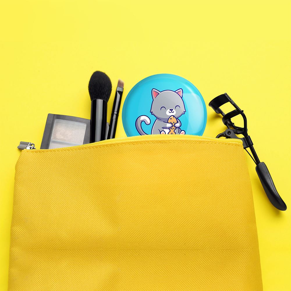 آینه های جیبی حیوانات بامزه گربه خندالو دایره ای به قطر 7.5 سانتی متر می باشد که نه خیلی بزرگ و غیر قابل استفاده در کیف آرایشی ست و نه خیلی کوچک که تصویر خاصی در آن مشاهده نشود. سایزی استاندارد و کارآمد دارد و مناسب قرار گیری در کیف لوازم آرایش و کیف های کوچک دستی نیز هست. بدنه ی آینه جیبی حیوانات بامزه گربه در قسمتی که آینه را در بر گرفته فلزی بوده و ظاهر براق و بسیار زیبایی دارد. چاپ طرح در پشت آینه بوسیله چاپگرهای دیجیتال شش رنگ با شفافیت و کیفیتی مثال زدنی انجام گرفته و با روکش لمینت حرارتی پوشیده شده که در مقابل آسیب و خط و خش مقاوم بوده و کیفیت بالایی دارد. آینه های جیبی حیوانات بامزه گربه خندالو با تنوع طرحی بسیار بالا، سلیقه هر نوع مخاطبی را تامین میکند.