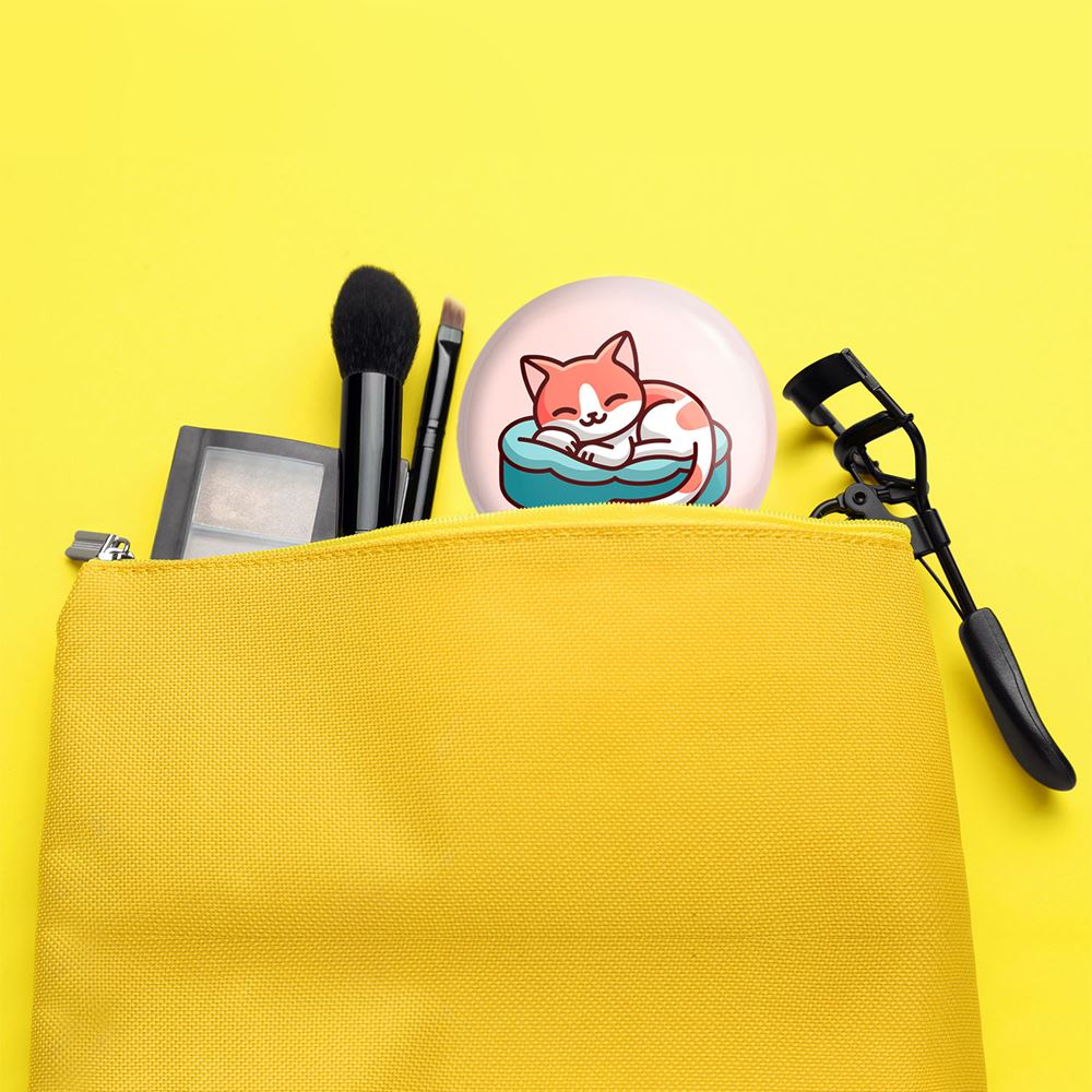 آینه های جیبی حیوانات بامزه گربه خندالو دایره ای به قطر 7.5 سانتی متر می باشد که نه خیلی بزرگ و غیر قابل استفاده در کیف آرایشی ست و نه خیلی کوچک که تصویر خاصی در آن مشاهده نشود. سایزی استاندارد و کارآمد دارد و مناسب قرار گیری در کیف لوازم آرایش و کیف های کوچک دستی نیز هست.