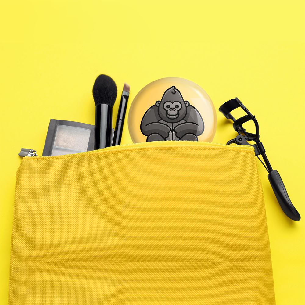 آینه های جیبی حیوانات بامزه گوریل خندالو دایره ای به قطر 7.5 سانتی متر می باشد که نه خیلی بزرگ و غیر قابل استفاده در کیف آرایشی ست و نه خیلی کوچک که تصویر خاصی در آن مشاهده نشود. سایزی استاندارد و کارآمد دارد و مناسب قرار گیری در کیف لوازم آرایش و کیف های کوچک دستی نیز هست. بدنه ی آینه جیبی حیوانات بامزه گوریل در قسمتی که آینه را در بر گرفته فلزی بوده و ظاهر براق و بسیار زیبایی دارد. چاپ طرح در پشت آینه بوسیله چاپگرهای دیجیتال شش رنگ با شفافیت و کیفیتی مثال زدنی انجام گرفته و با روکش لمینت حرارتی پوشیده شده که در مقابل آسیب و خط و خش مقاوم بوده و کیفیت بالایی دارد. آینه های جیبی حیوانات بامزه گوریل خندالو با تنوع طرحی بسیار بالا، سلیقه هر نوع مخاطبی را تامین میکند.
