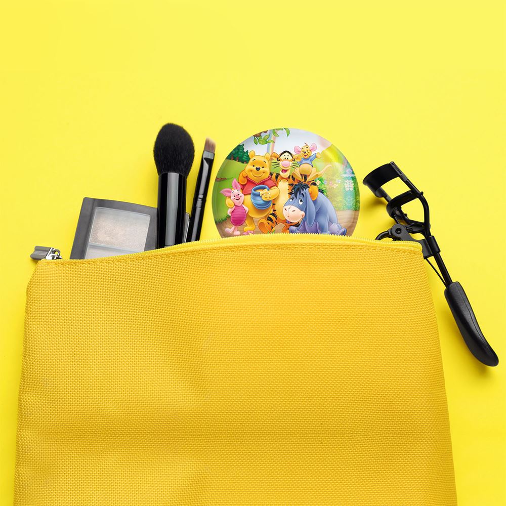 آینه های جیبی خرس پو Winnie The Pooh خندالو دایره ای به قطر 7.5 سانتی متر می باشد که نه خیلی بزرگ و غیر قابل استفاده در کیف آرایشی ست و نه خیلی کوچک که تصویر خاصی در آن مشاهده نشود. سایزی استاندارد و کارآمد دارد و مناسب قرار گیری در کیف لوازم آرایش و کیف های کوچک دستی نیز هست.