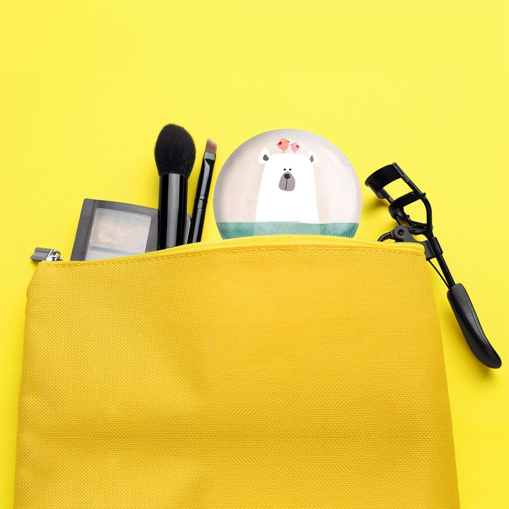 آینه های جیبی خرس خندالو دایره ای به قطر 7.5 سانتی متر می باشد که نه خیلی بزرگ و غیر قابل استفاده در کیف آرایشی ست و نه خیلی کوچک که تصویر خاصی در آن مشاهده نشود. سایزی استاندارد و کارآمد دارد و مناسب قرار گیری در کیف لوازم آرایش و کیف های کوچک دستی نیز هست.