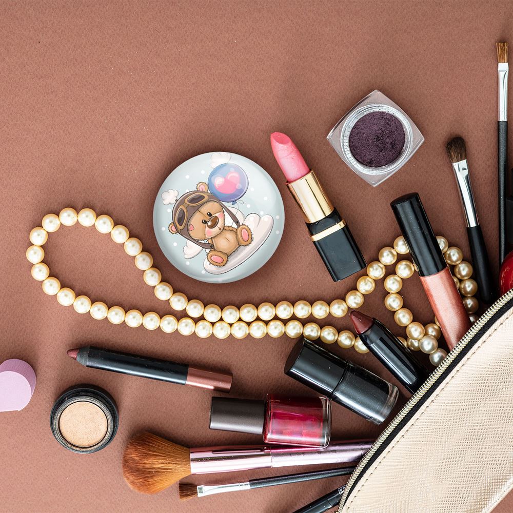 آینه های جیبی خرس خندالو دایره ای به قطر 7.5 سانتی متر می باشد که نه خیلی بزرگ و غیر قابل استفاده در کیف آرایشی ست و نه خیلی کوچک که تصویر خاصی در آن مشاهده نشود. سایزی استاندارد و کارآمد دارد و مناسب قرار گیری در کیف لوازم آرایش و کیف های کوچک دستی نیز هست.