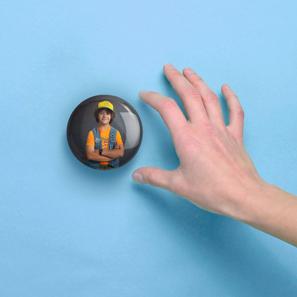 آینه های جیبی داستین سریال استرنجر تینگز Stranger Things خندالو دایره ای به قطر 7.5 سانتی متر می باشد که نه خیلی بزرگ و غیر قابل استفاده در کیف آرایشی ست و نه خیلی کوچک که تصویر خاصی در آن مشاهده نشود. سایزی استاندارد و کارآمد دارد و مناسب قرار گیری در کیف لوازم آرایش و کیف های کوچک دستی نیز هست.