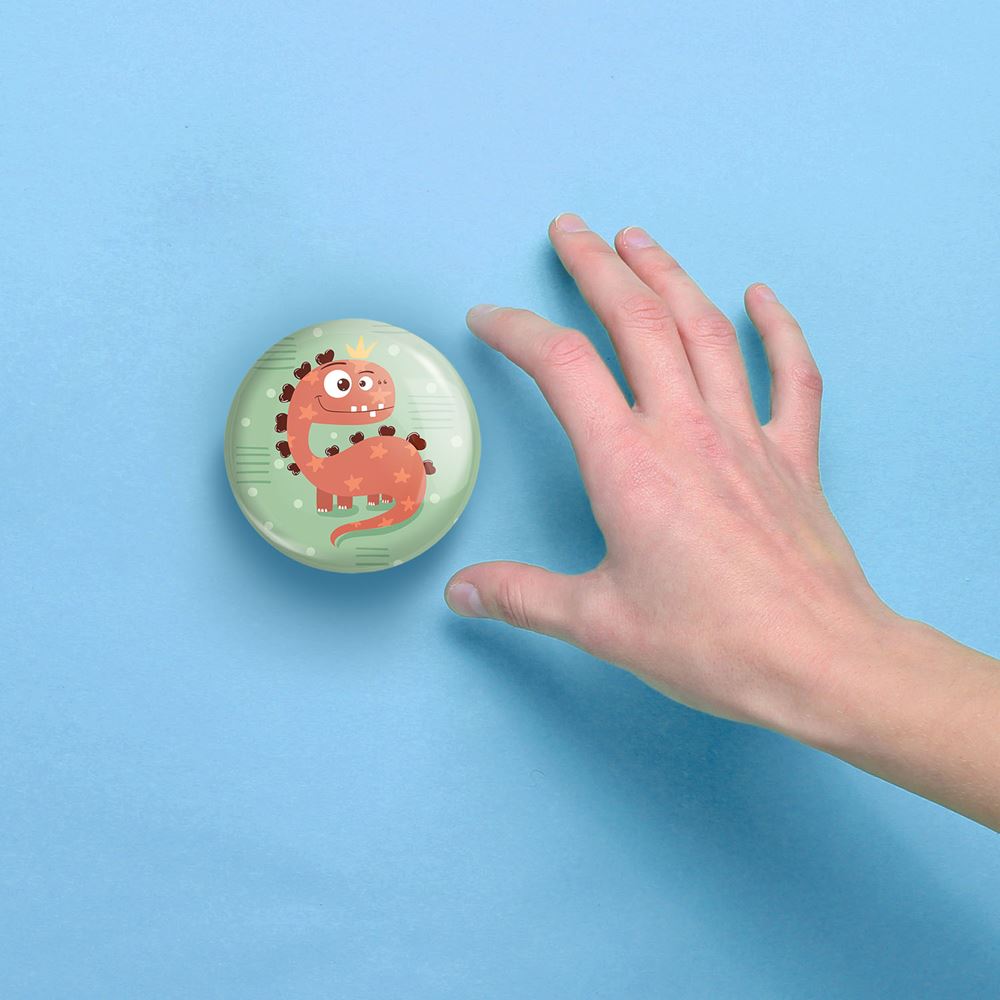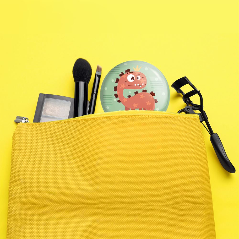 آینه های جیبی دایناسور خندالو دایره ای به قطر 7.5 سانتی متر می باشد که نه خیلی بزرگ و غیر قابل استفاده در کیف آرایشی ست و نه خیلی کوچک که تصویر خاصی در آن مشاهده نشود. سایزی استاندارد و کارآمد دارد و مناسب قرار گیری در کیف لوازم آرایش و کیف های کوچک دستی نیز هست. بدنه ی آینه جیبی دایناسور در قسمتی که آینه را در بر گرفته فلزی بوده و ظاهر براق و بسیار زیبایی دارد. چاپ طرح در پشت آینه بوسیله چاپگرهای دیجیتال شش رنگ با شفافیت و کیفیتی مثال زدنی انجام گرفته و با روکش لمینت حرارتی پوشیده شده که در مقابل آسیب و خط و خش مقاوم بوده و کیفیت بالایی دارد. آینه های جیبی دایناسور خندالو با تنوع طرحی بسیار بالا، سلیقه هر نوع مخاطبی را تامین میکند.