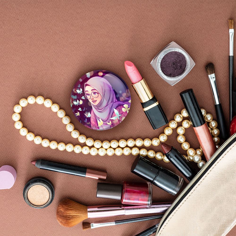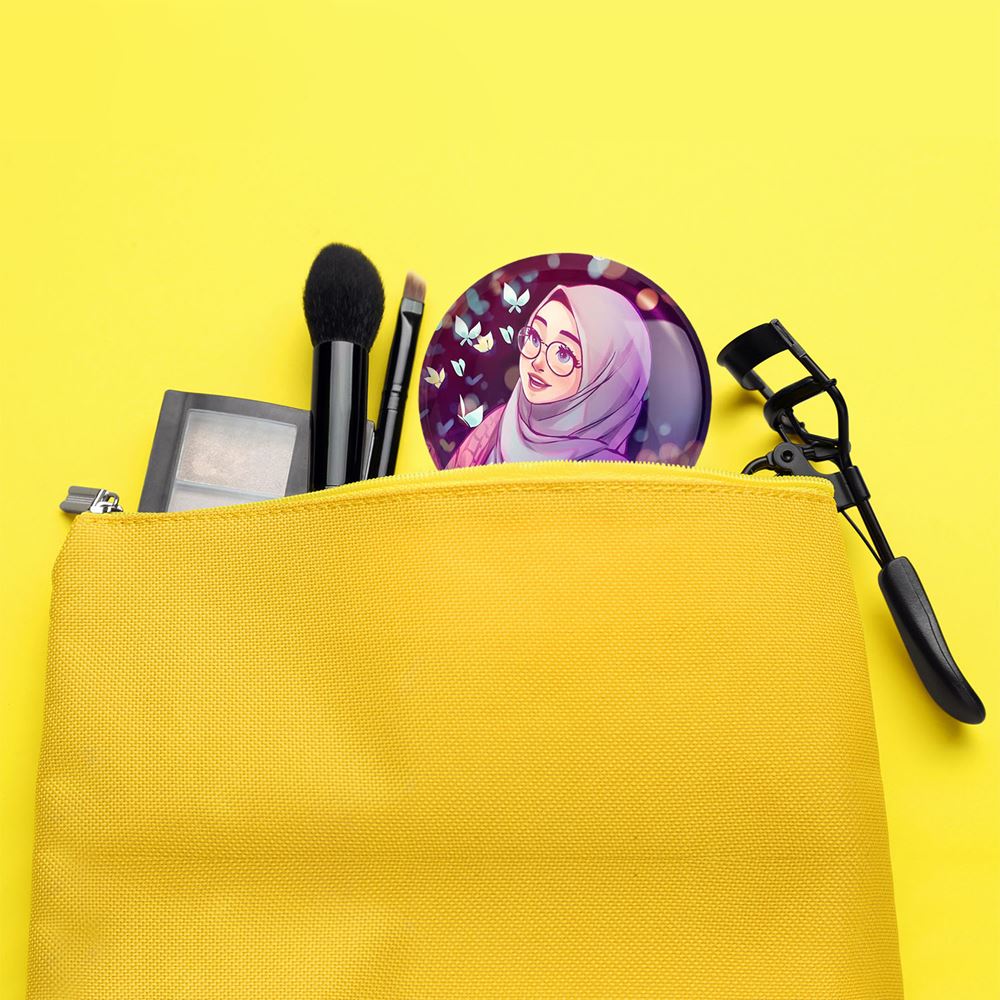 آینه های جیبی دخترانه باحجاب خندالو دایره ای به قطر 7.5 سانتی متر می باشد که نه خیلی بزرگ و غیر قابل استفاده در کیف آرایشی ست و نه خیلی کوچک که تصویر خاصی در آن مشاهده نشود. سایزی استاندارد و کارآمد دارد و مناسب قرار گیری در کیف لوازم آرایش و کیف های کوچک دستی نیز هست.