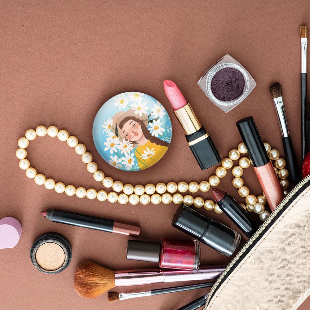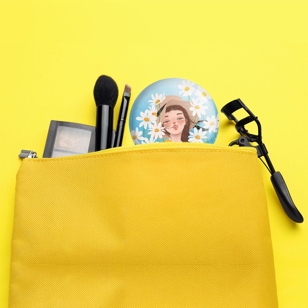 آینه های جیبی دخترانه خندالو دایره ای به قطر 7.5 سانتی متر می باشد که نه خیلی بزرگ و غیر قابل استفاده در کیف آرایشی ست و نه خیلی کوچک که تصویر خاصی در آن مشاهده نشود. سایزی استاندارد و کارآمد دارد و مناسب قرار گیری در کیف لوازم آرایش و کیف های کوچک دستی نیز هست.