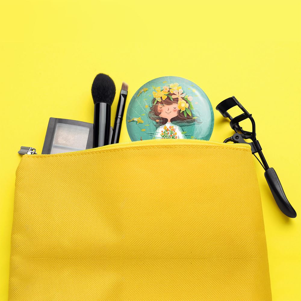 آینه های جیبی دخترانه خندالو دایره ای به قطر 7.5 سانتی متر می باشد که نه خیلی بزرگ و غیر قابل استفاده در کیف آرایشی ست و نه خیلی کوچک که تصویر خاصی در آن مشاهده نشود. سایزی استاندارد و کارآمد دارد و مناسب قرار گیری در کیف لوازم آرایش و کیف های کوچک دستی نیز هست.