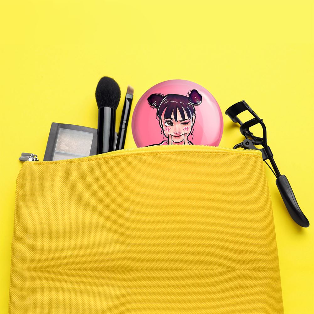 آینه های جیبی دخترانه خندالو دایره ای به قطر 7.5 سانتی متر می باشد که نه خیلی بزرگ و غیر قابل استفاده در کیف آرایشی ست و نه خیلی کوچک که تصویر خاصی در آن مشاهده نشود. سایزی استاندارد و کارآمد دارد و مناسب قرار گیری در کیف لوازم آرایش و کیف های کوچک دستی نیز هست.