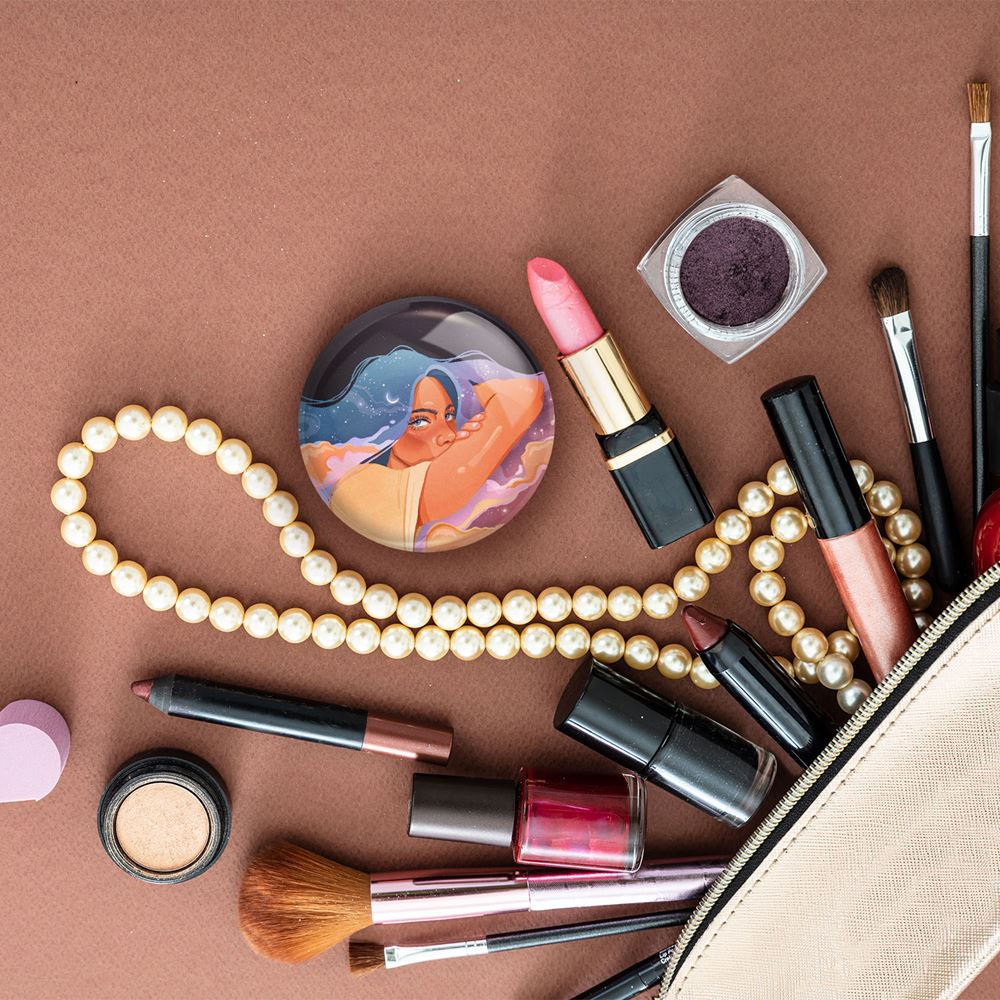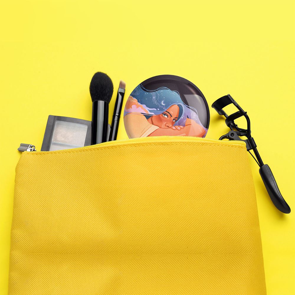 آینه های جیبی دخترانه خندالو دایره ای به قطر 7.5 سانتی متر می باشد که نه خیلی بزرگ و غیر قابل استفاده در کیف آرایشی ست و نه خیلی کوچک که تصویر خاصی در آن مشاهده نشود. سایزی استاندارد و کارآمد دارد و مناسب قرار گیری در کیف لوازم آرایش و کیف های کوچک دستی نیز هست.