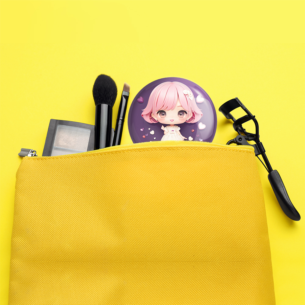 آینه های جیبی دخترانه (Girlish) خندالو دایره ای به قطر 7.5 سانتی متر می باشد که نه خیلی بزرگ و غیر قابل استفاده در کیف آرایشی ست و نه خیلی کوچک که تصویر خاصی در آن مشاهده نشود. سایزی استاندارد و کارآمد دارد و مناسب قرار گیری در کیف لوازم آرایش و کیف های کوچک دستی نیز هست.